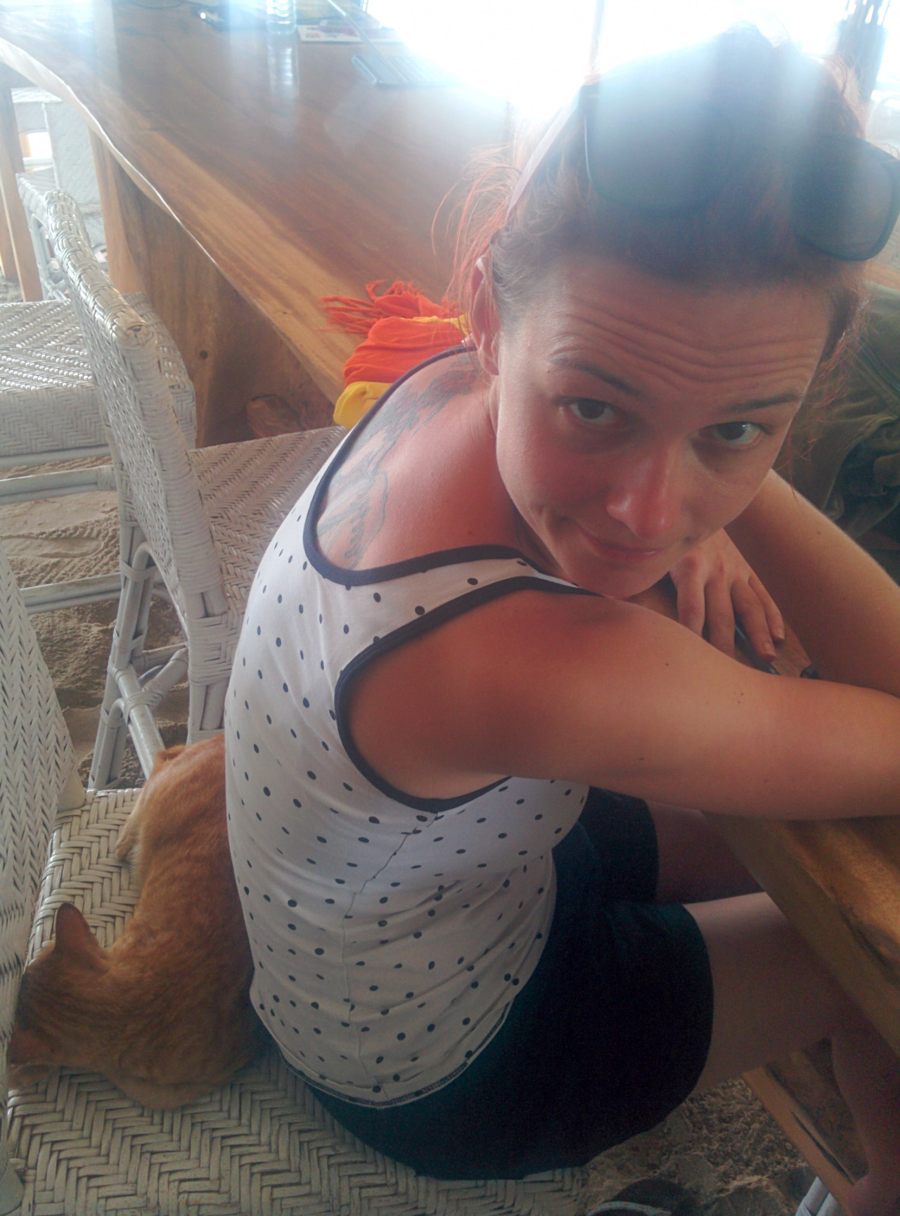 der schönste strand ist ca 20min fußweg von unserem hut entfernt, ein cafe mit leidiglich gutem internet fand sich auf halbem weg. wir haben uns mittlerweile schon so gut eingelebt dass wir uns hier schon ein wenig heimisch fühlen. man hat die restaurants die man mag, eigentlich nur warungs der einheimischen, da gibt es einfache und ehrliche dafür auch günstige küche. von weitem wird man schon begrüßt, immer mit einem netten lächeln. bars haben wir auch in fußweite mit sehr talentierten musikern die gerne mal einen zum besten geben. bei einem lagerfeuer konnten wir von den einheimischen erfahren, wie die verwandtschaftsverhältnisse in unserer umgebung und wie die besitztümer verteilt sind. da die insel recht klein ist, ist es auch nicht verwunderlich dass sich eine große familie einige guesthouses, restaurants und bars sichern kann.