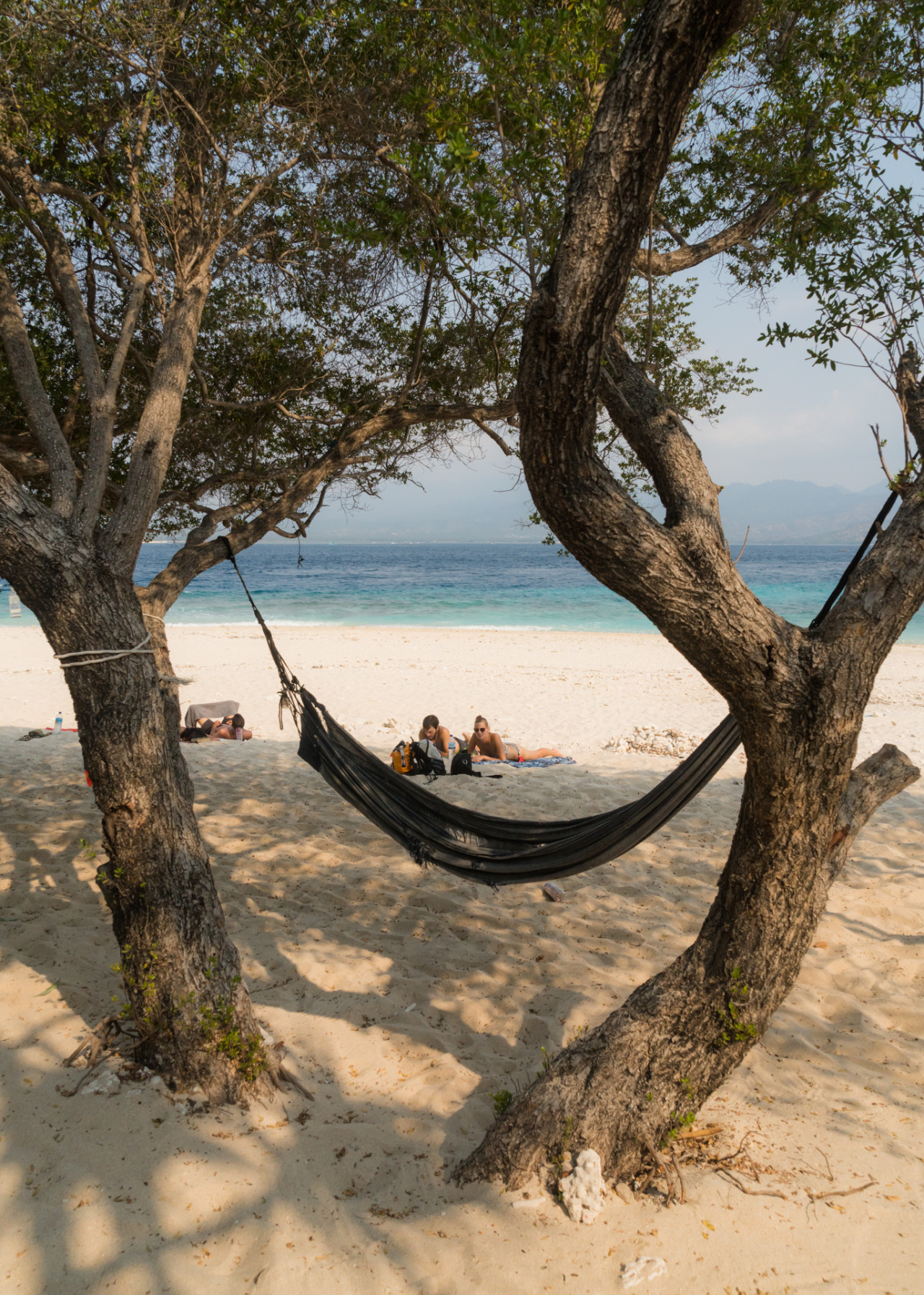 am hafen, beim warten aufs boot, trafen wir 2 deutsche studenten, joscha und lisa. gemeinsam suchten wir auf gili meno gute 2h nach einer guten und günstigen unterkunft. die beiden einigten sich auf ein (mehr oder weniger) beachfront coconut hut, wir ließen uns von einem sehr schönen, neuen bungalow in der hinteren reihe überzeugen. wie ich später herausfand, ist joscha vor ein paar jahren tom in perth begegnet, und hat mit ihm einige tage verbracht. die welt der rucksacktouristen ist klein!